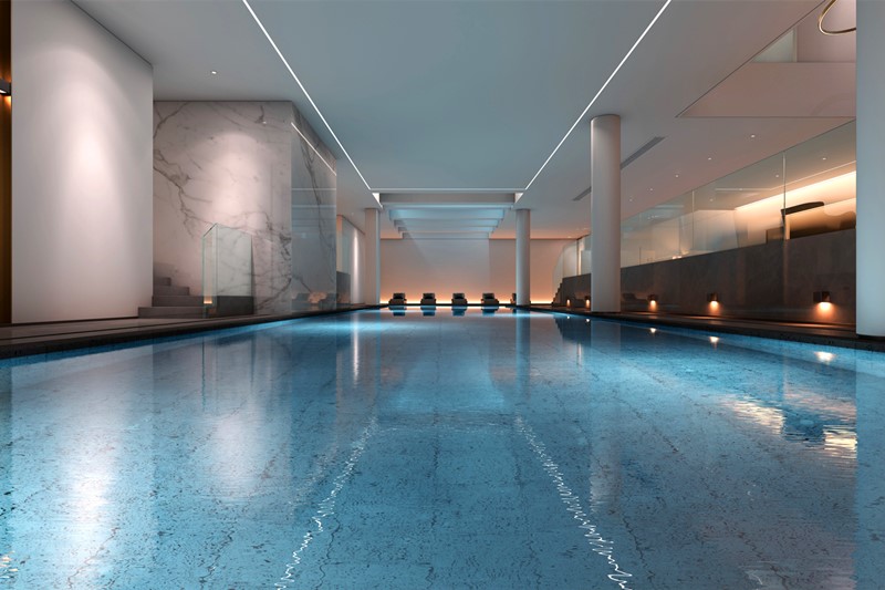 本项目为会所室内恒温游泳池,室内恒温泳池中,循环过滤系统采用4台4HP泳池循环泵与3台Φ1200侧式砂缸;消毒系统采用全流量中压紫外线杀菌器+含氯消毒剂;采用在线水质监测仪,可检测水中pH值、余氯、浊度、ORP值、水温,且能够自动控制3台投药泵的启停,维持池水水质;游泳池加热系统选用间接换热,配置2台90kw制热量空气源热泵机组与2台制热量145kw的燃气热水器;控制系统采用半自动时控控制系统。